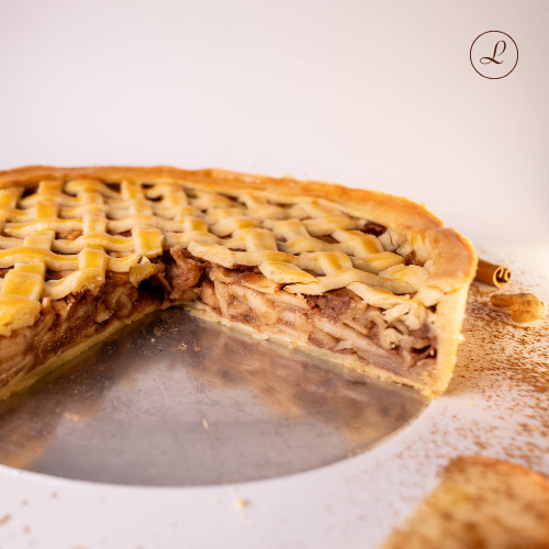 Sinta o aconchego em cada pedaço da nossa Torta de Maçã Americana. Um clássico irresistível: base crocante, recheio de maçãs caramelizadas com canela e baunilha, finalizada com charme e tradição.